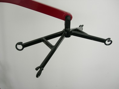 Der Kreuzbügel ermöglicht es, die Gurtschlaufen für Rücken- und Beinteile im Abstand einzuhängen. Der Benutzer wird in bequem zurückgelehnter Position transportiert.